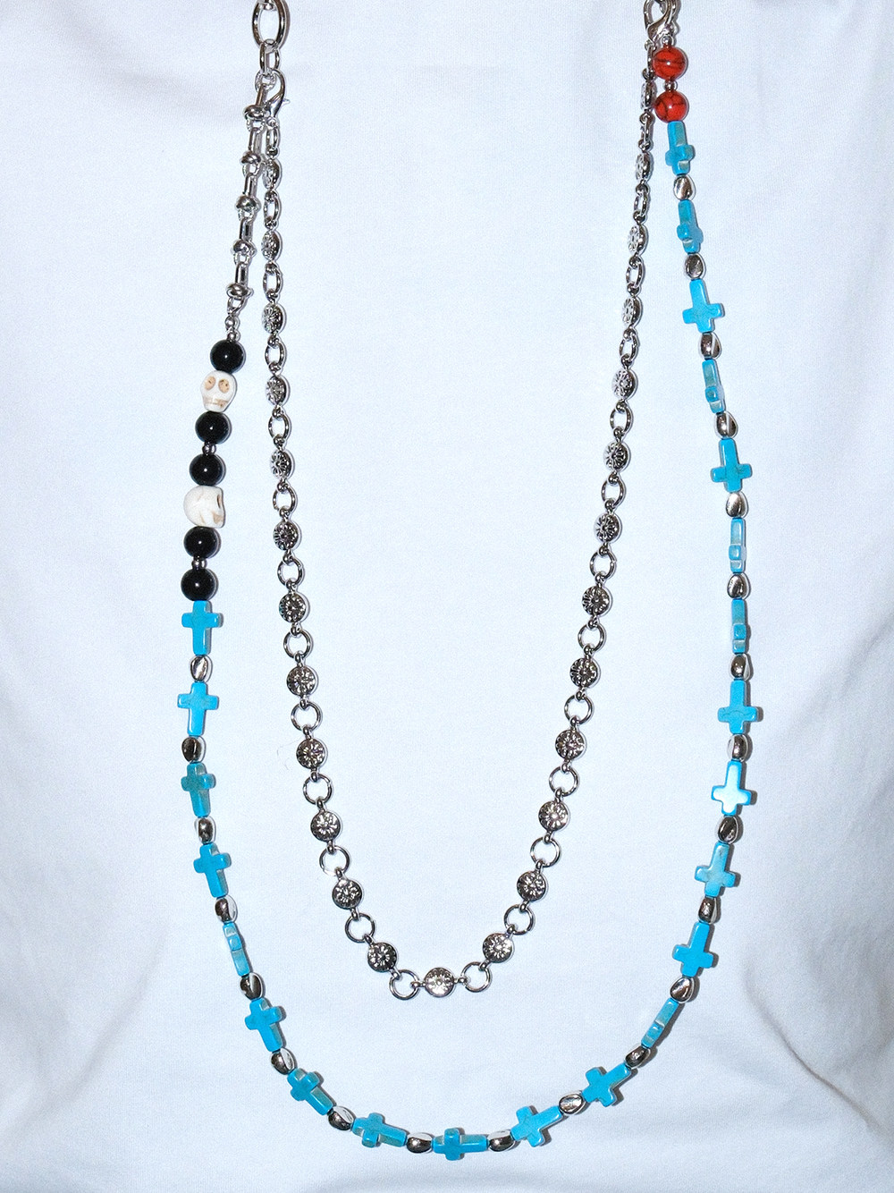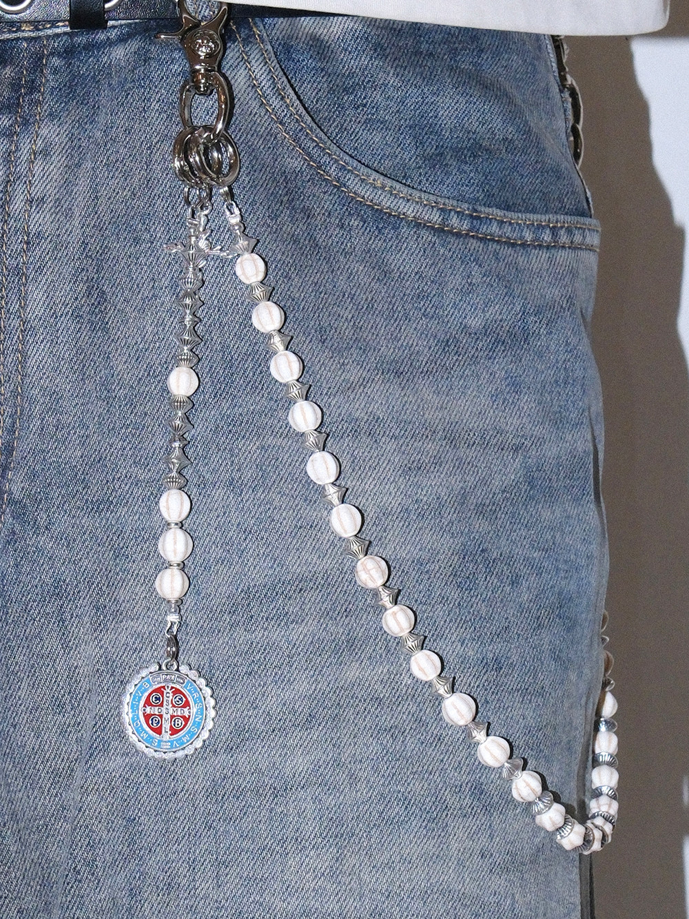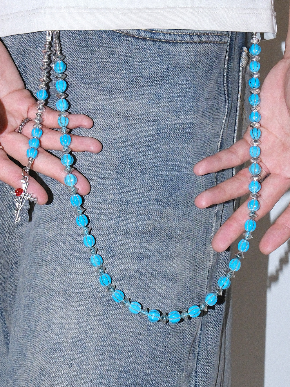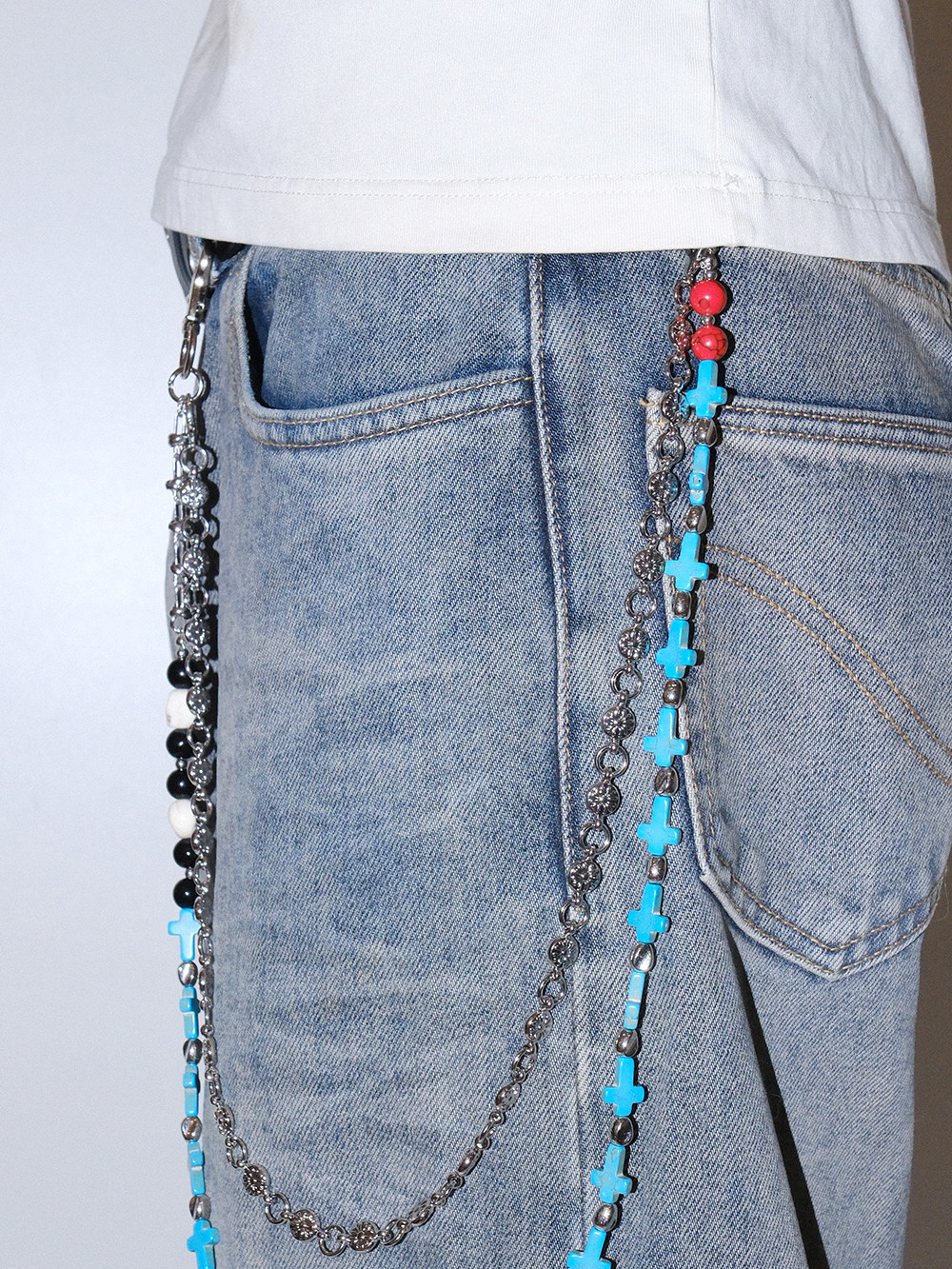 Darkblue Store Retro Blue Cross Skull Punk Trouser Chain
