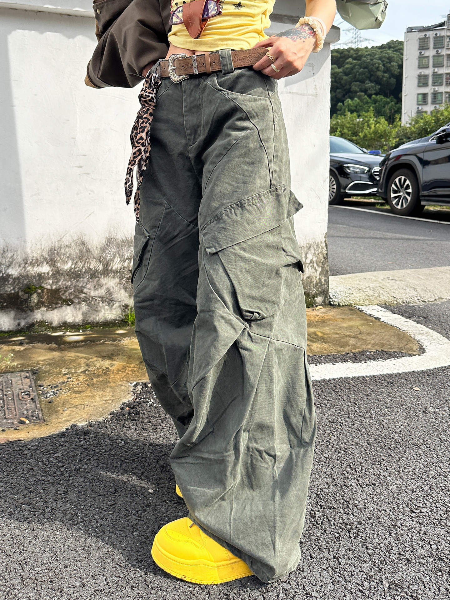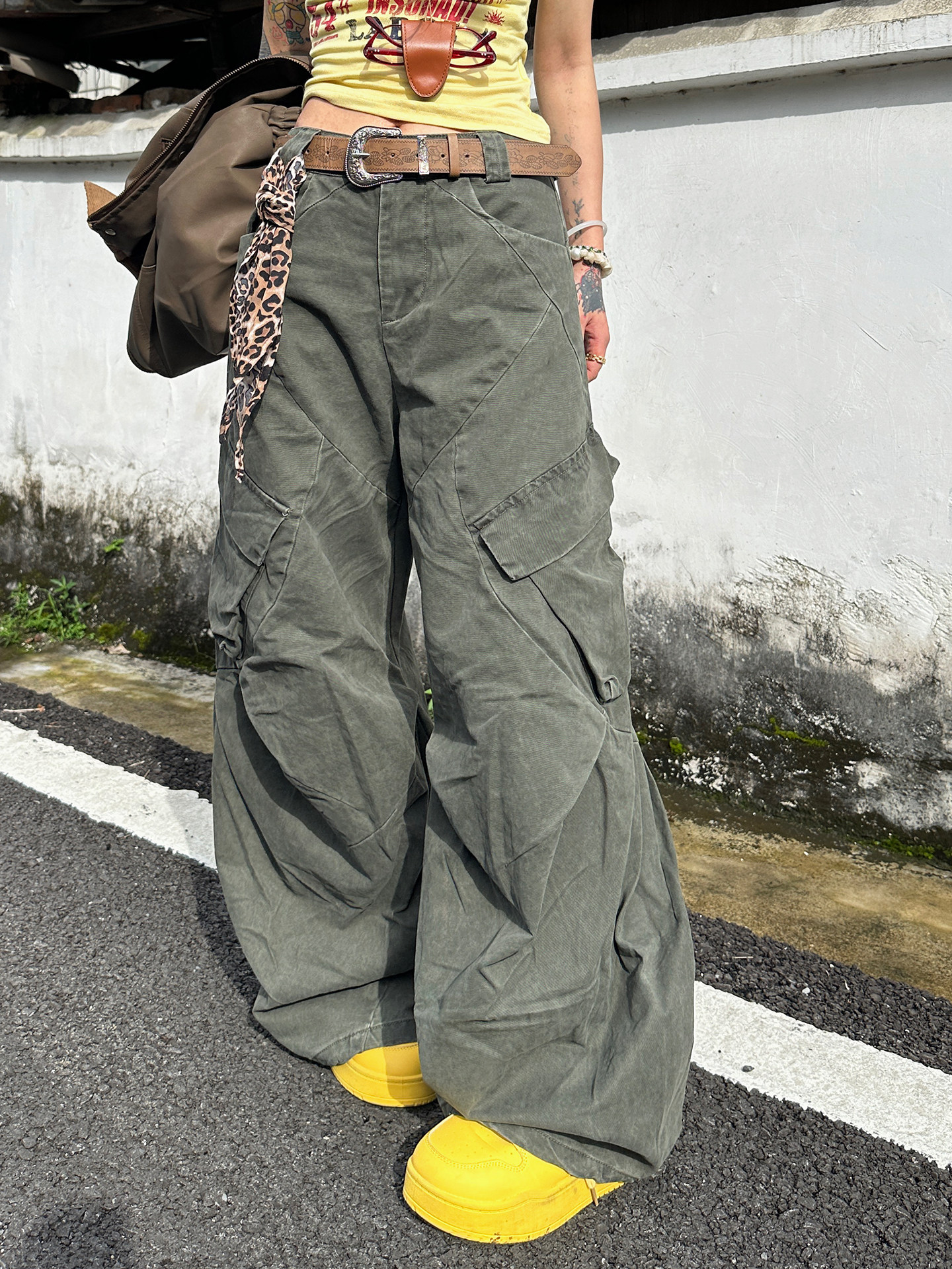 SIXMINU Large Pocket Washed Scimitar Overalls