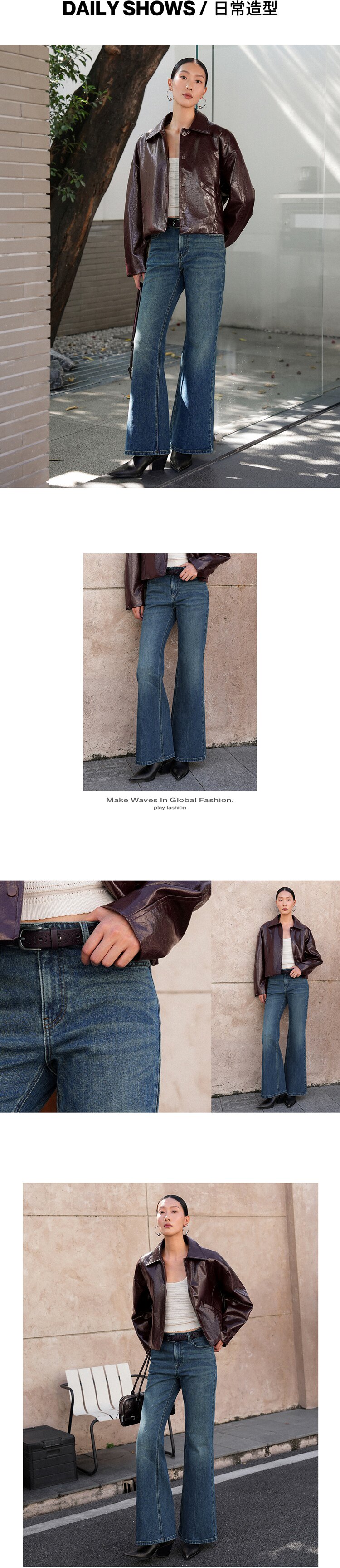 Urban Revivo Washed Belt Flared Jeans
