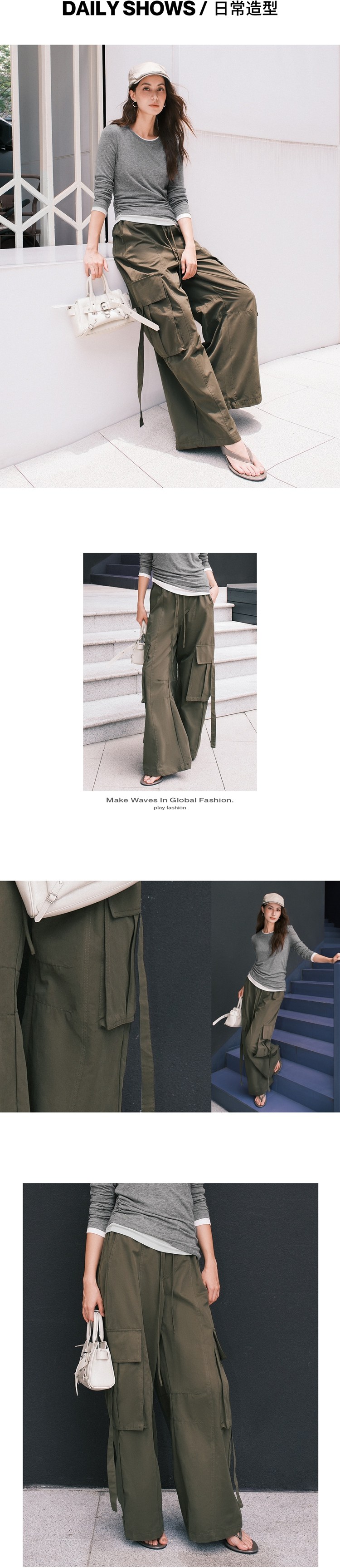 Urban Revivo Workwear Elastic Strap Wide Leg Pants