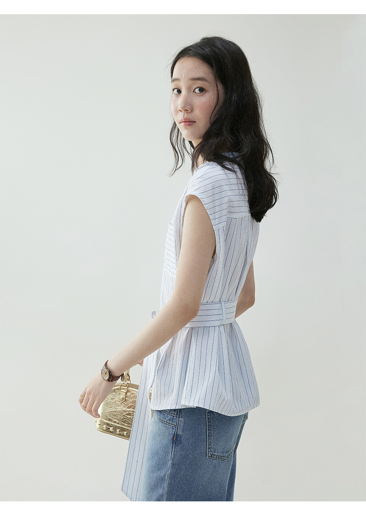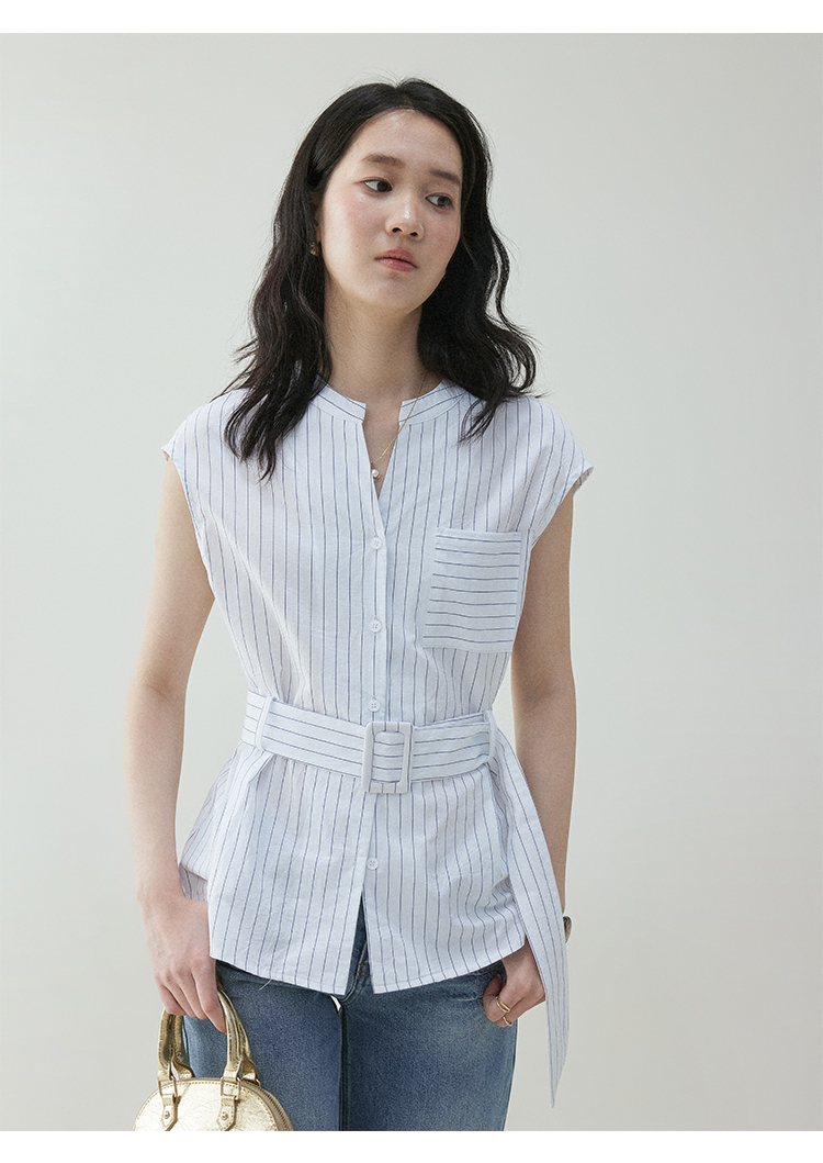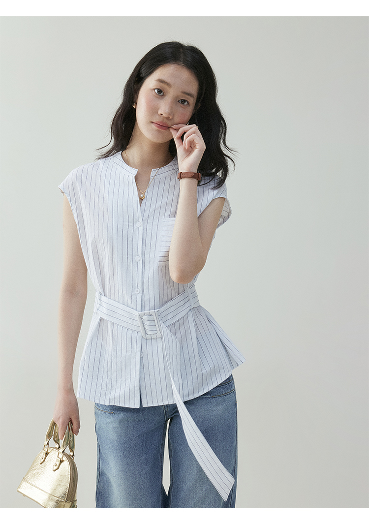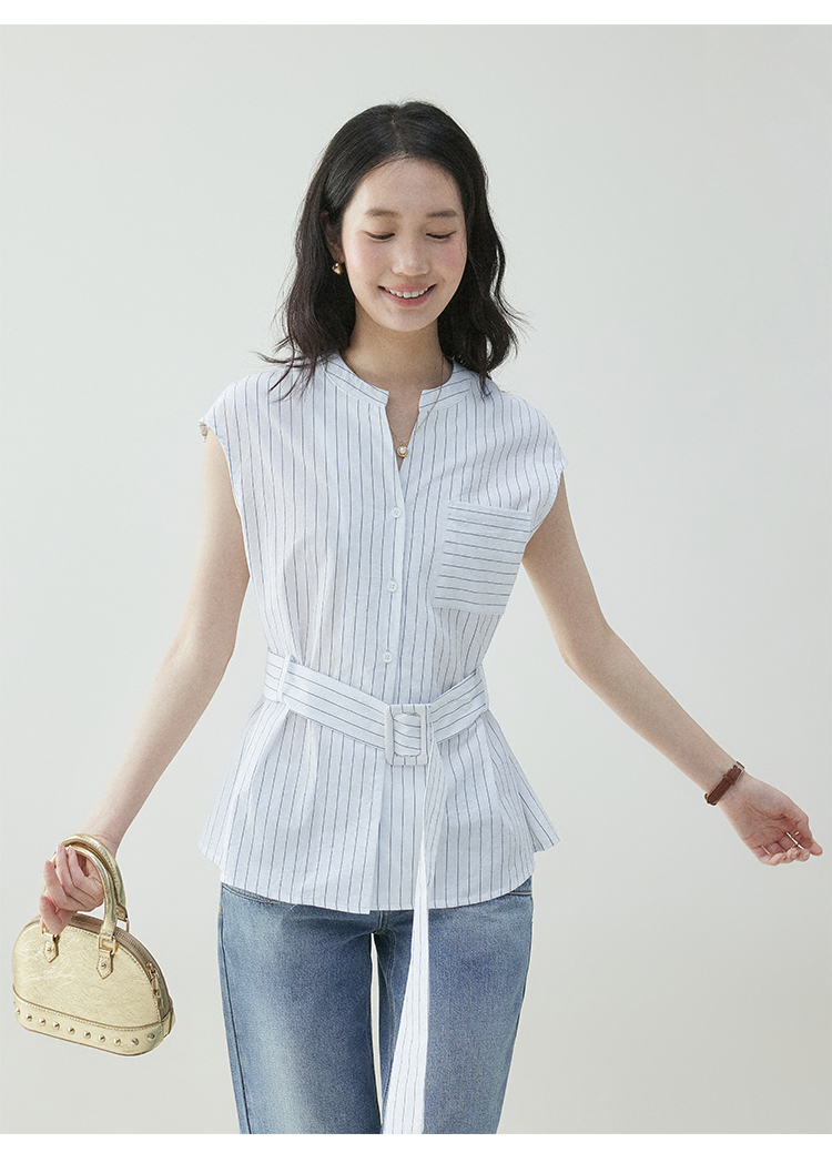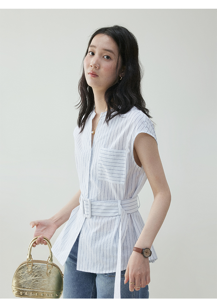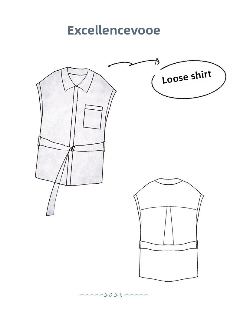 VOOE Temperament Pure Cotton Thin Belt Shirt