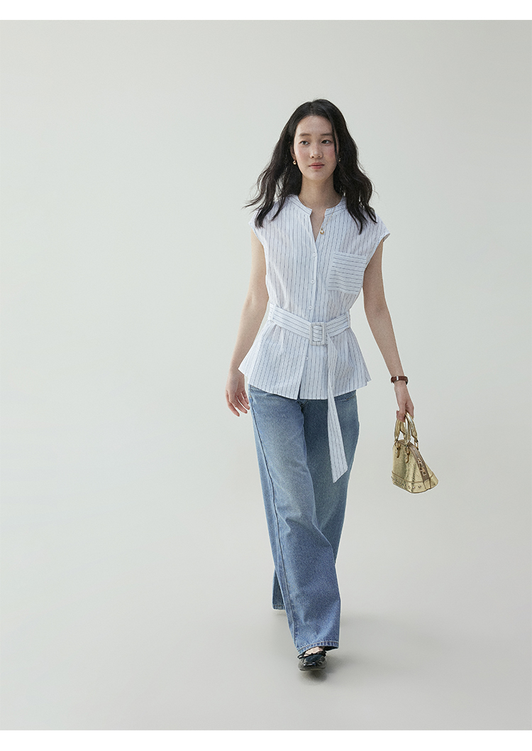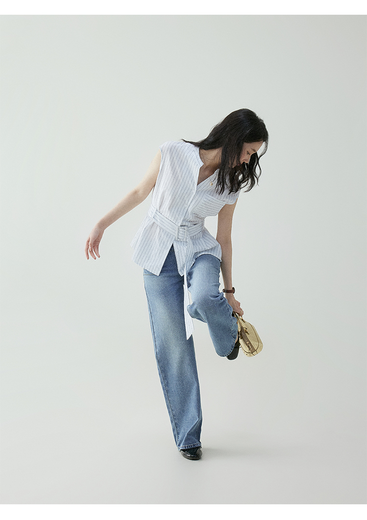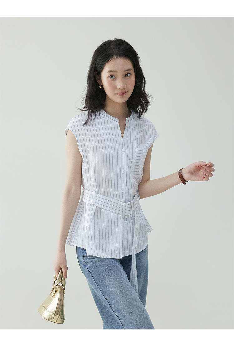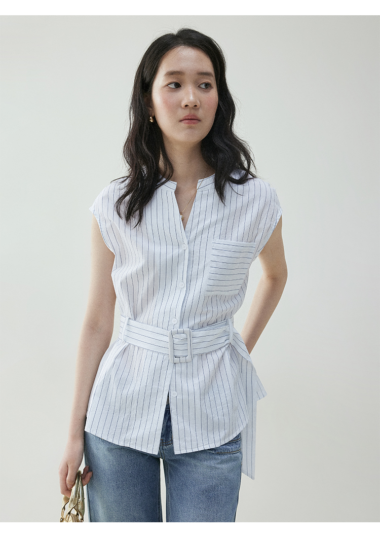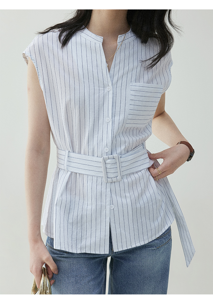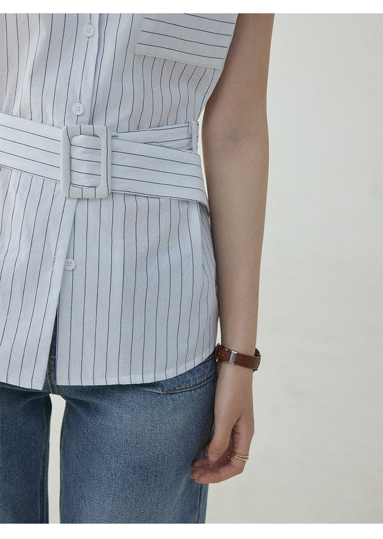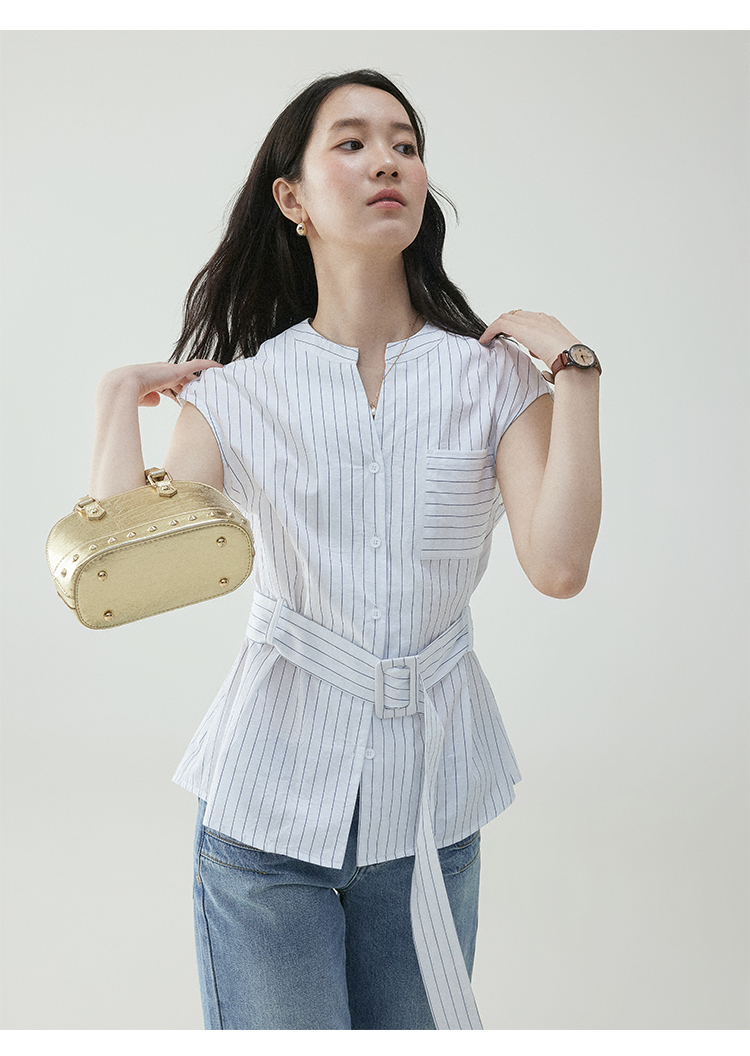VOOE Temperament Pure Cotton Thin Belt Shirt