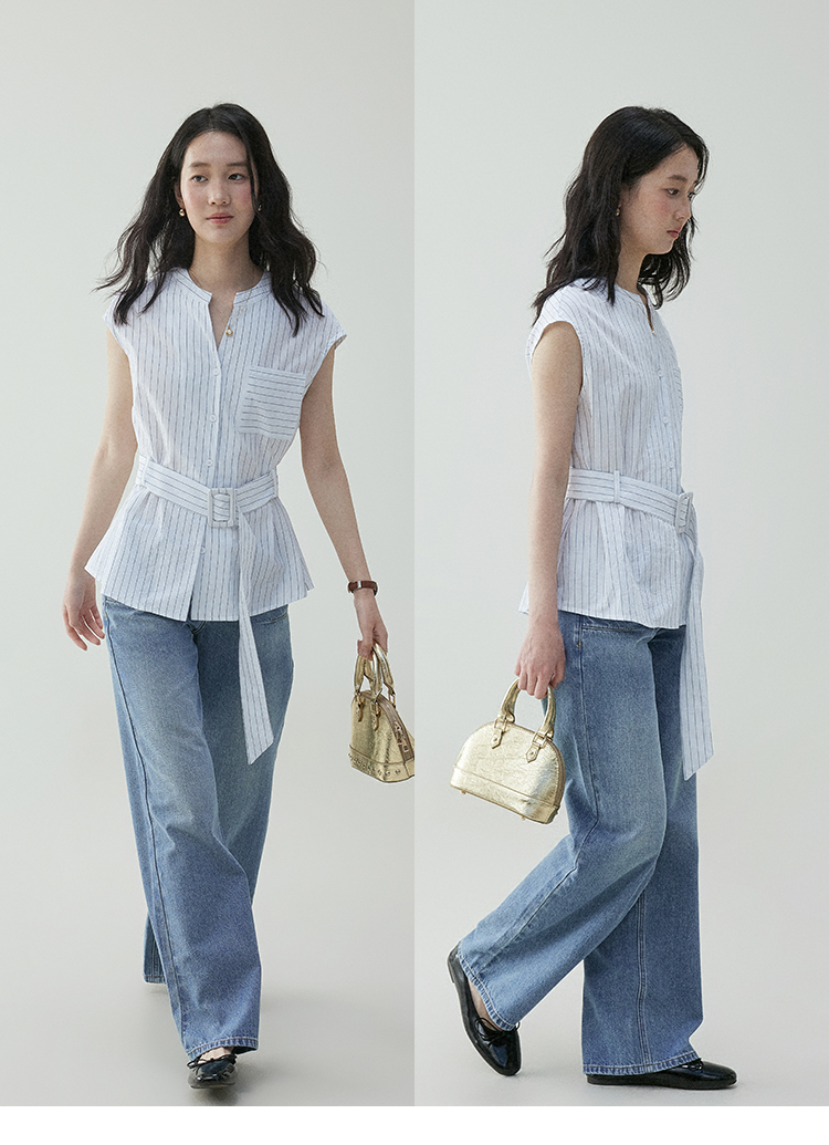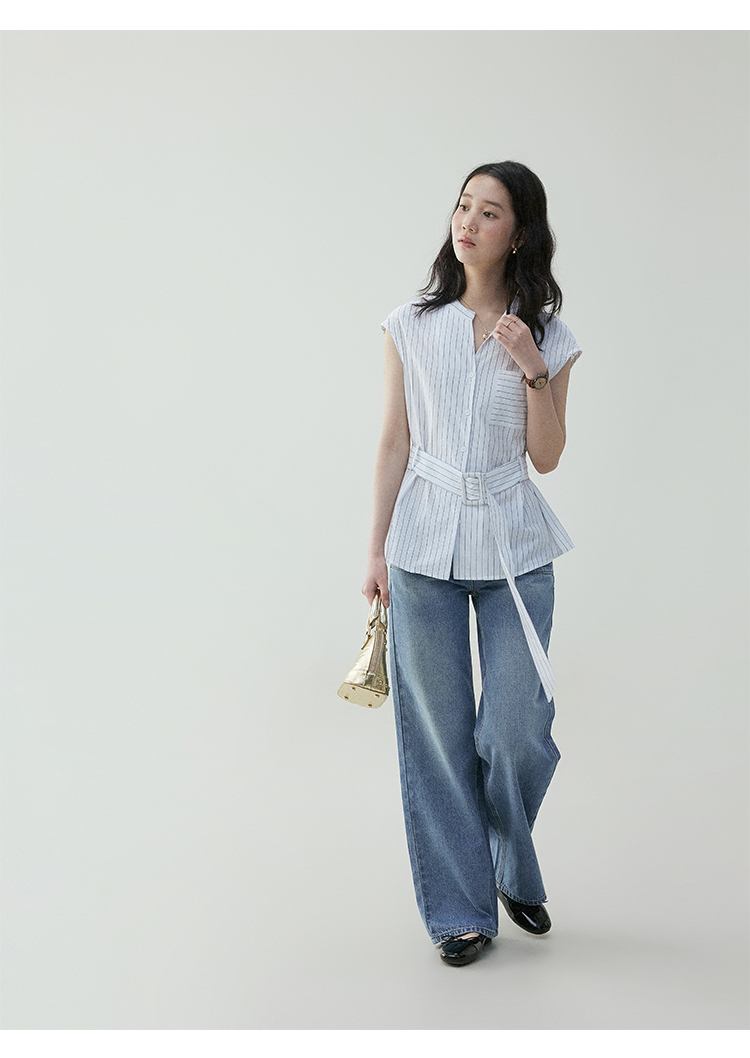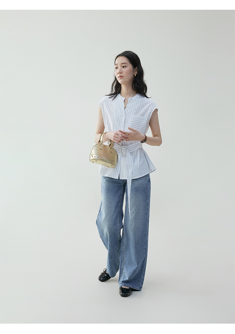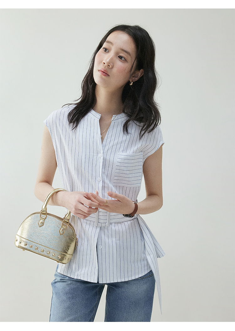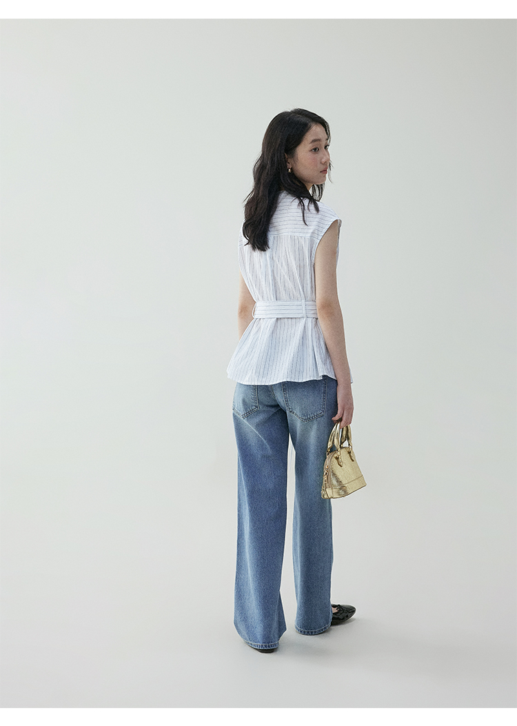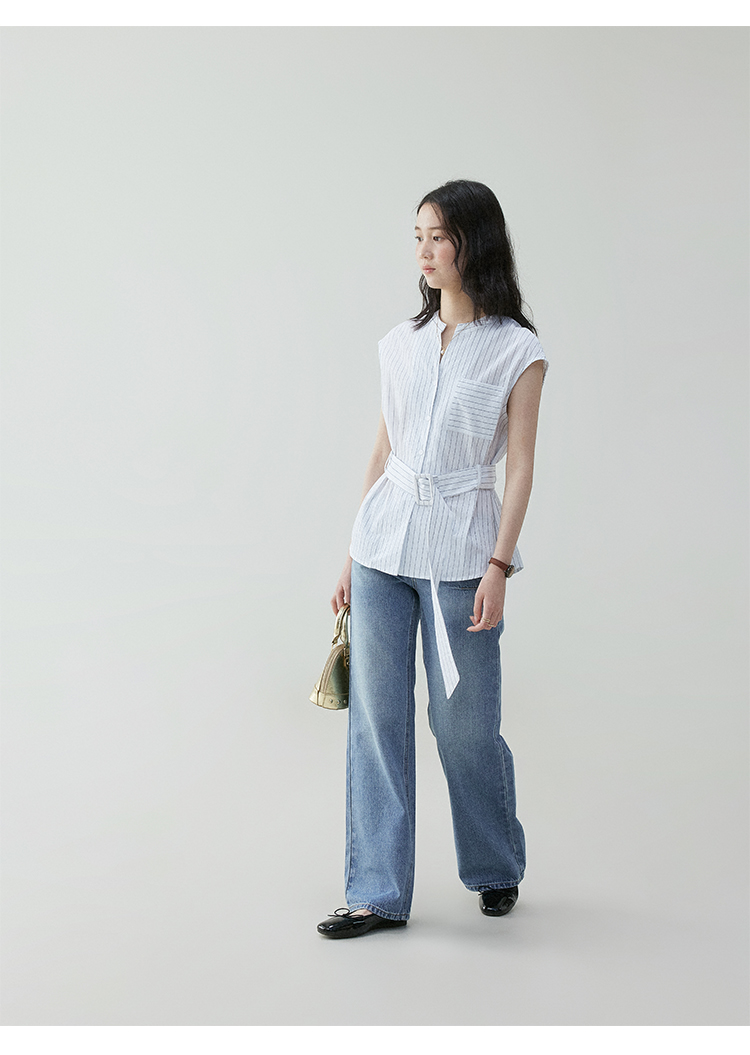 VOOE Temperament Pure Cotton Thin Belt Shirt